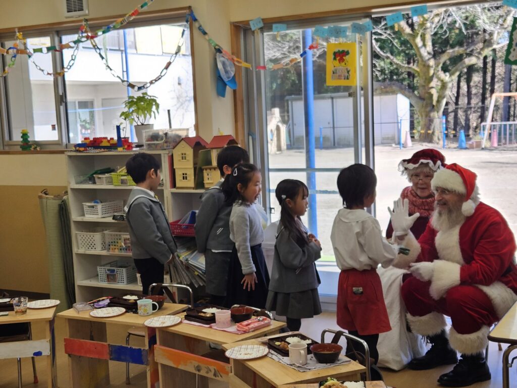 サンタさんとクロースさんは各お部屋にプレゼントを届け、”Merry Christmas” と一人一人に手渡してくれました🎁