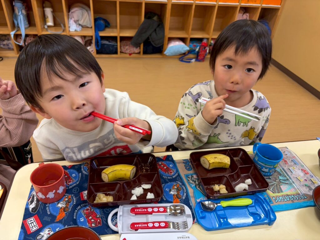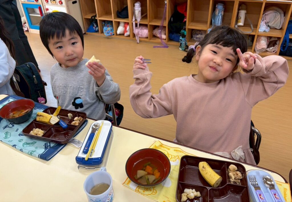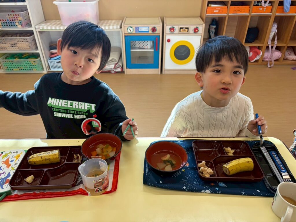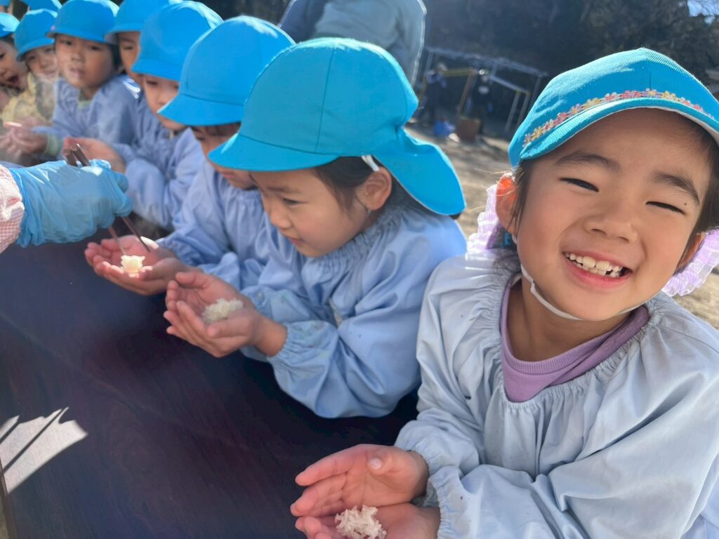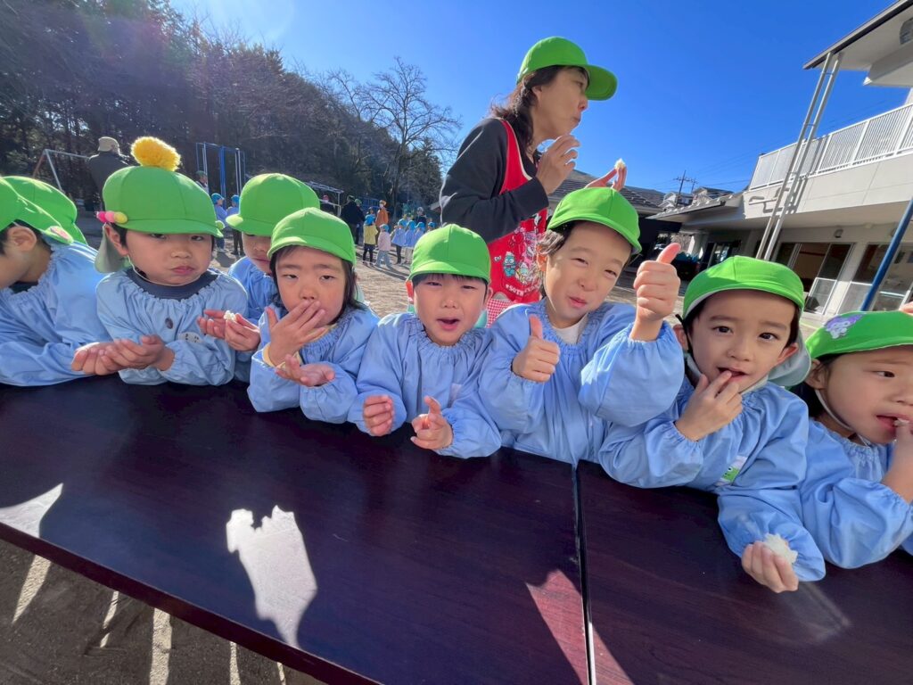 「おいしいね♪」「おかわりしたい♪」とつきたてのお餅を味わいながら食べていたこどもたちでした。