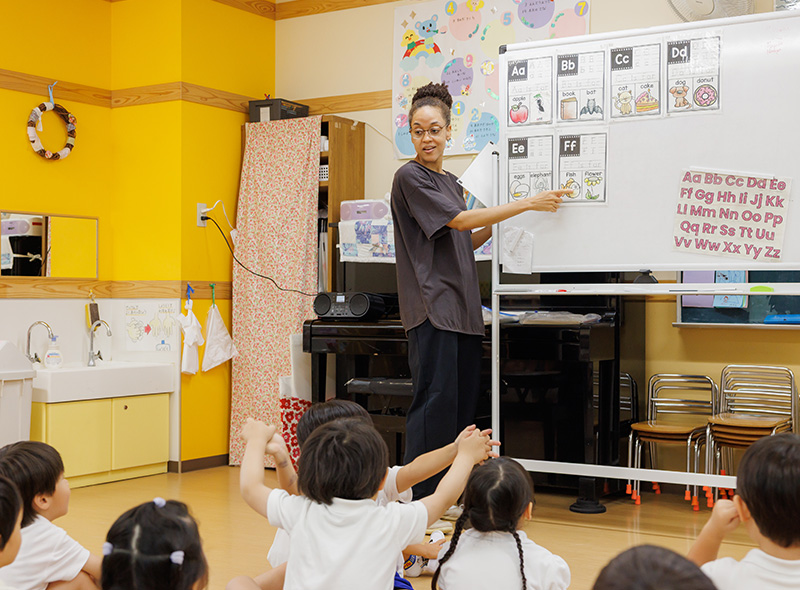 当園には、英語に親しむ時間だけでなく、常にネイティブの先生がこどもたちのそばにいます。