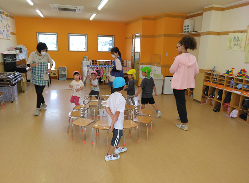 当園では、年少クラスは週1回、年中・年長クラスは毎日英語の時間を設けています。