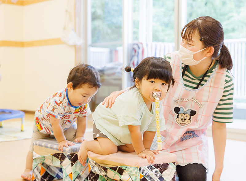 | 業務内容 | 幼保連携型認定こども園の乳児保育、幼児保育・教育の補助を行っていただきます。 遊びを中心に自由でのびのびした保育・教育を実践しています。 乳幼児の自主性を大切にして、こどもを中心に生活と行事を構成しています。 |