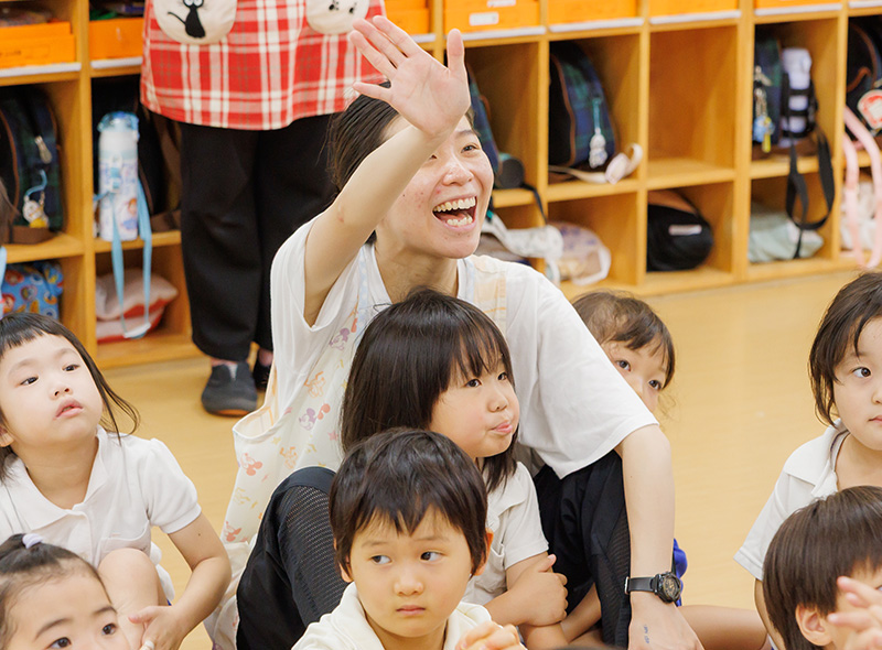 当園ではネイティブ講師による英語保育があり、日常の中でも自然に英語が飛び交います。先生も一緒に歌やゲームを楽しみながら、いつの間にか英語が身についていく。そんな環境が整っています。